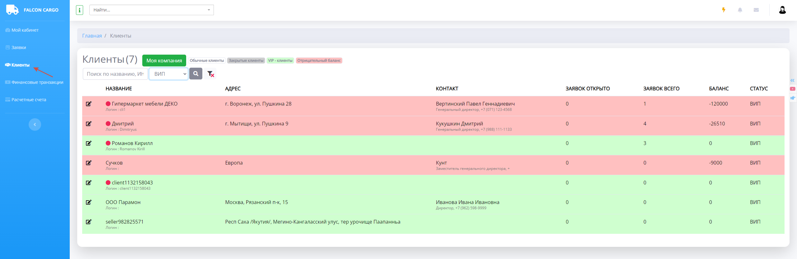 Менеджер может самостоятельно закрепить к компании клиента также сотрудников. Для того, чтобы это сделать, нужно перейти в соответствующий раздел Клиенты: