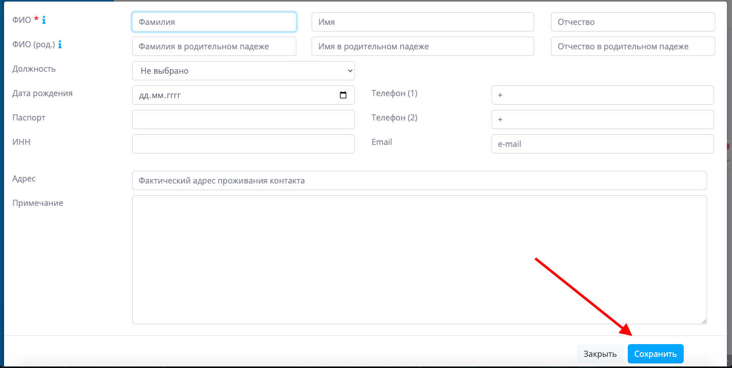 3. Заполните все необходимые данные будущего сотрудника и сохраните