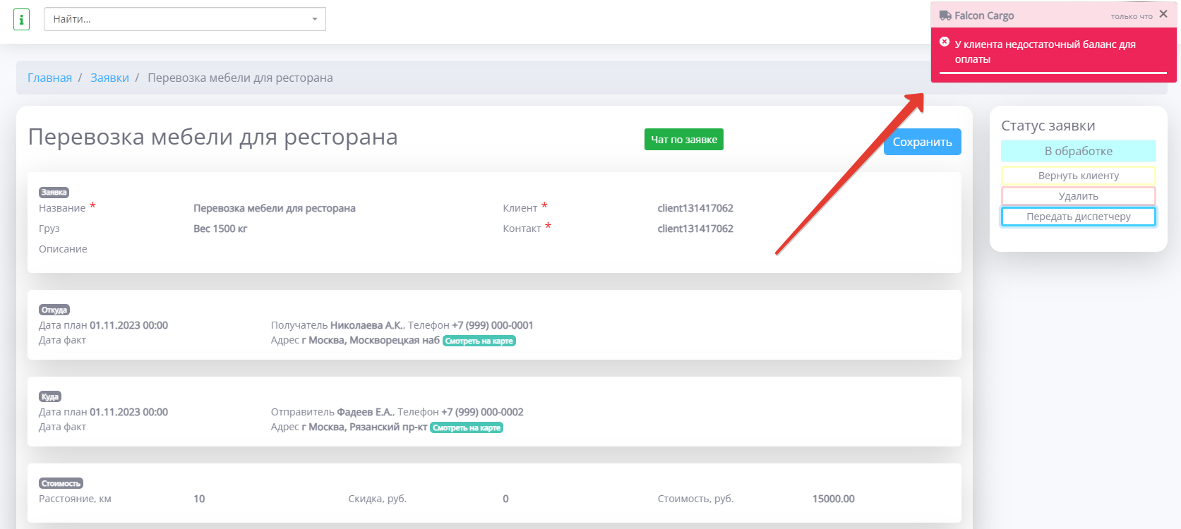 Если средств не хватает для оплаты услуги- заявка будет возвращена.