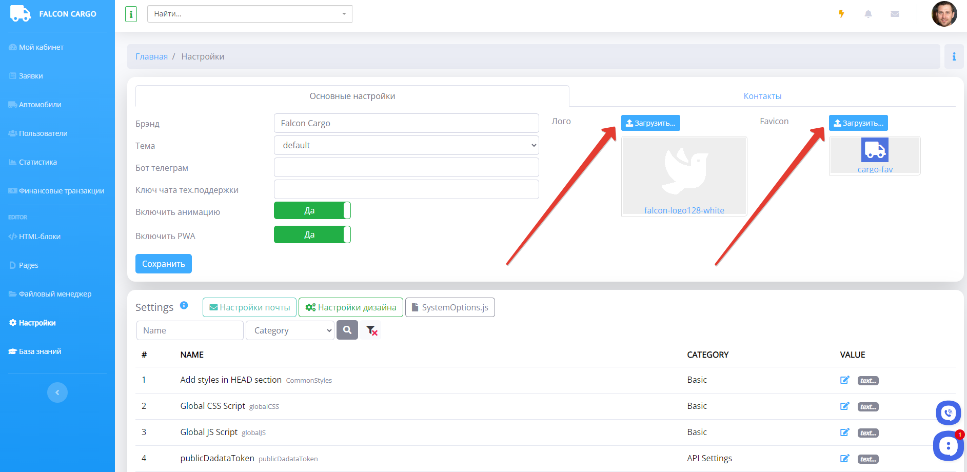 - СИСТЕМА Как изменить основные настройки площадки? Как установить свой чат оператора внизу на страницах? (replain) Как поменять фавикон, лого, название сайта? Как подготовить PWA решение, чтобы можно было поставить значок на экран телефона и с него заходить на сайт Как работают Настройки дизайна Как рассчитывается стоимость перевозки? Можно ли ее менять?