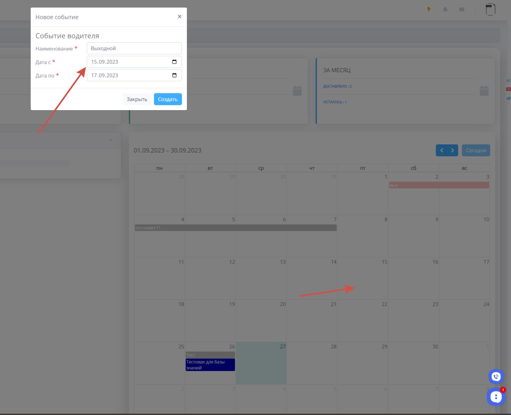 Каждый пользователь может сам себе составить график загрузки и выходных дней. Календарь будет доступен для диспетчера и менеджера.