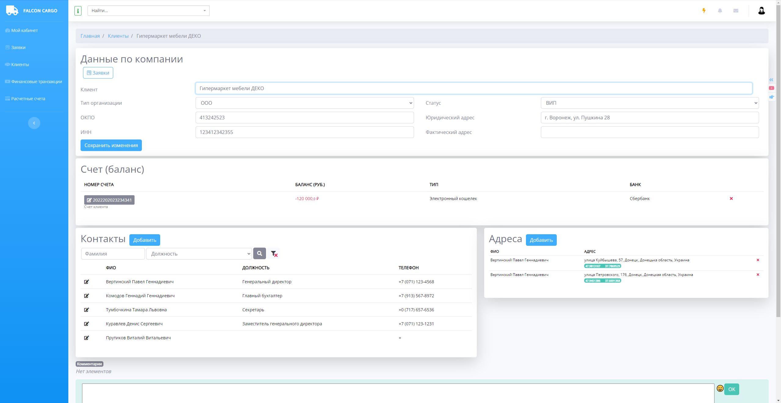 - КАБИНЕТ МЕНЕДЖЕРА Как работать с заявками? Как работать с клиентами? Как редактировать данные клиента? Как добавить сотрудников клиента? Как добавить адрес в карточке клиента? Как контролировать р/с клиентов? Как создать новый счет для клиента? Как редактировать данные уже созданного р/с клиента? Как работать с финансовыми операциями?