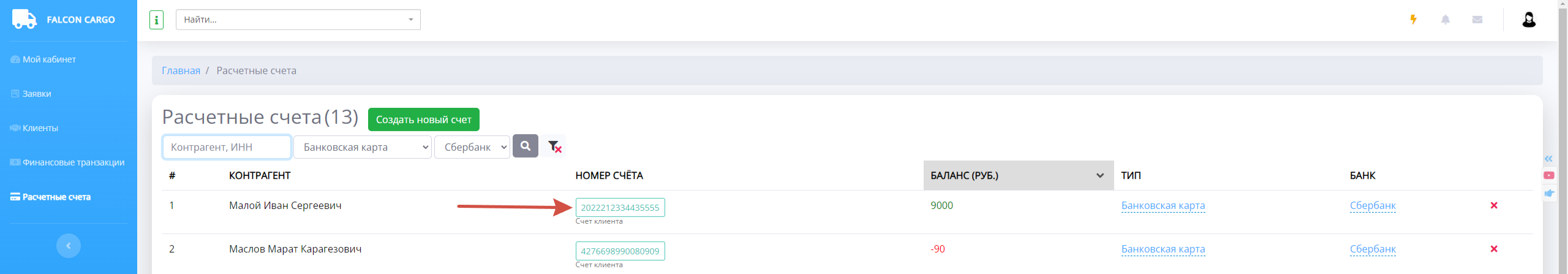 Для того, чтобы начать редактирование, нужно выбрать нужный счет и нажать на номер счета: