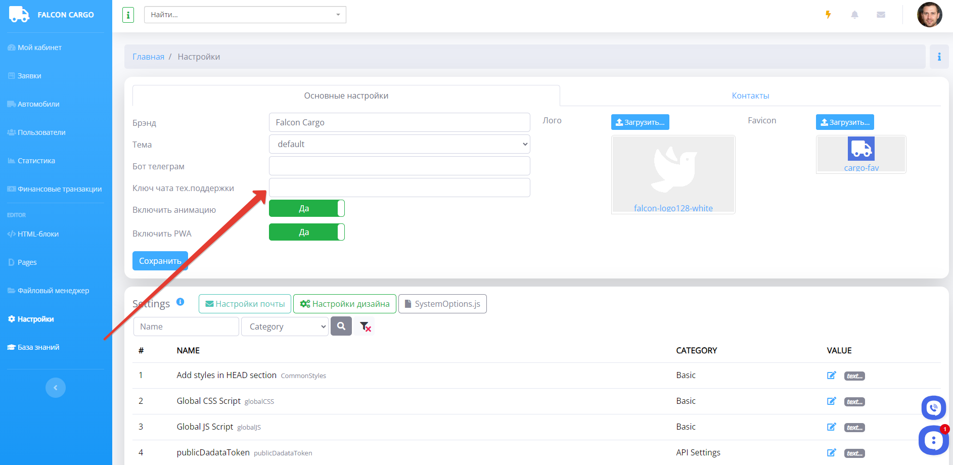 - СИСТЕМА Как изменить основные настройки площадки? Как установить свой чат оператора внизу на страницах? (replain) Как поменять фавикон, лого, название сайта? Как подготовить PWA решение, чтобы можно было поставить значок на экран телефона и с него заходить на сайт Как работают Настройки дизайна Как рассчитывается стоимость перевозки? Можно ли ее менять?